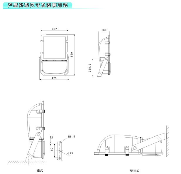 性能特点:采用高光效、长寿命气体放电灯作光源,选项用进口高纯镜面铝阳极氧化材料做反光镜并通过精确配光设计,反光效率高,透光性好,节能环保;灯具、电器箱一体化设计,美观大方,安装、维护简单方便;当市电断电后再次来电时,灯具能够立即进行热启动,极大的降低了因停电对客户工作造成的影响;良好的电磁兼容性,不会对输电网络造成干扰;采用可回收轻质合金环保材料和高科技喷涂技术,防尘防水,耐腐防锈,可在高温潮湿和腐蚀性等恶劣环境中长期使用;良好的电磁兼容性,不会对输电网络造成干扰。座式、壁挂式等多种安装方式,适应不同工作现场的照明需要。